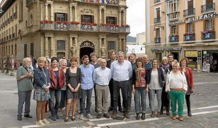 Joseba Asiron estuvo acompañado ayer de la candidata de EH Bildu al Gobierno de Nafarroa, Bakartxo Ruiz, por el coordinador de EH Bildu en Iruñea, Dani Salaregi, y por varios compañeros de corporación, como Aritz Romeo, Joxe Abaurrea o Maider Beloki.