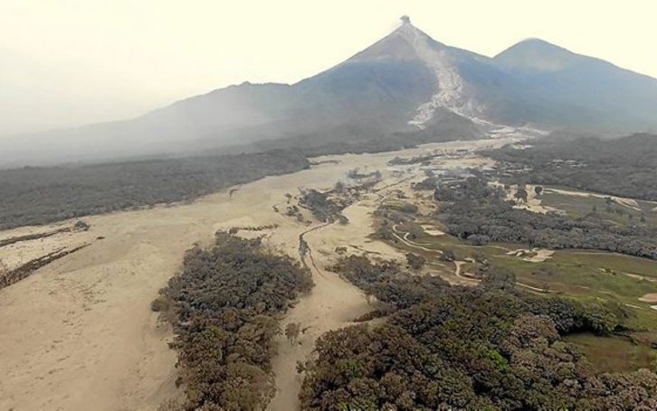 El río de ardiente lodo que escupió el volcán, situado entre los límites de los departamentos de Escuintla, Chimaltenango y Sacatepéquez, a unos 40 kilómetros al suroeste de la capital guatemalteca y a otros tantos de la ciudad de Antigua, sepultó completamente tres aldeas en su letal recorrido, que obligó a los habitantes de la zona a huir desesperadamente como pudieron. La lluvia de ceniza recorrió decenas de kilómetros obligando incluso a cerrar el aeropuerto de Ciudad de Guatemala.