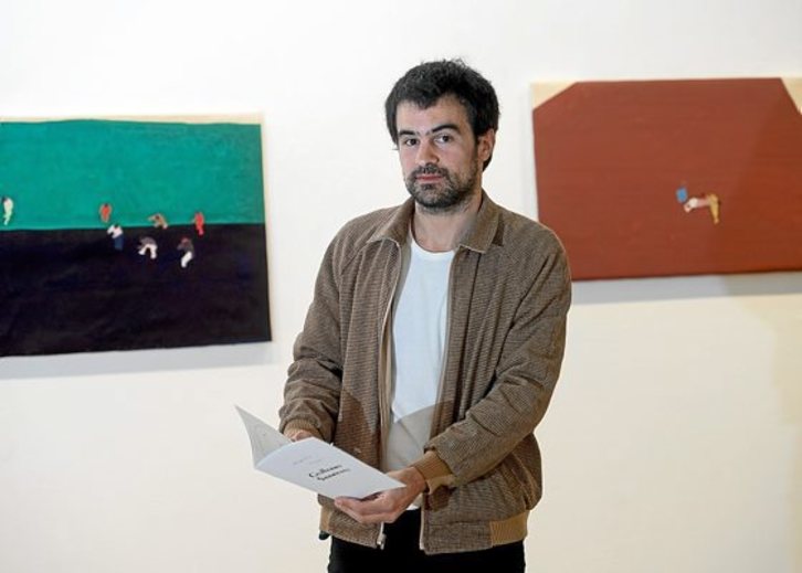 La directora de Educación y Cultura del Consistorio iruindarra, Maitena Muruzabal, y el propio autor presentaron una exposición que es continuación del proyecto “UN.A.UN”, expuesto en el Centro Huarte en 2012. En ambos proyectos el encuentro de los colores en los lienzos enfrenta al público a la realidad y a la dificultad de dotar de un sentido de cercanía a lo desconocido. «Se trata de una obra que aborda un espacio indefinido que no llega a conformarse como paisaje. En este espacio plano, bidimensional, se inscriben, como la potencia de un signo primitivo, figuras humanas con posturas idénticas».