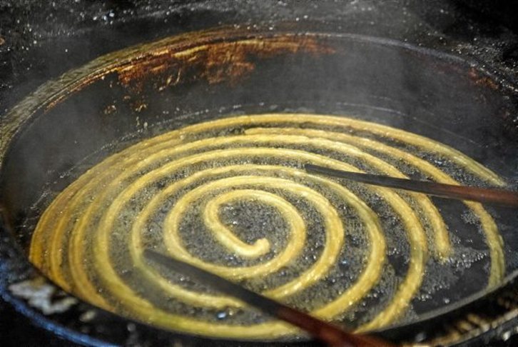 Es que soy único. Por una parte, me hacen con forma de espiral, lo que me convierte en el más enrollado del mercado. Y además me preparan con un fuego alimentado por leña, como se hacía al viejo estilo, lo que también supone que sea de los más genuinos.