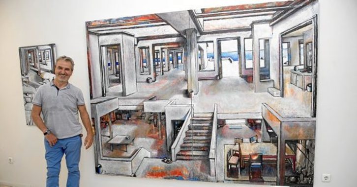 Pinturas y esculturas de pequeño formato, realizadas en su mayoría en los últimos años, son las obras que componen la muestra que se inaugura hoy en la Galería Ekain de Donostia. El cuadro más antiguo de la exposición está fechado de 2012 y fue pintado sobre la tapa de un cuadro eléctrico –«a partir de ahí comencé a pintar sobre metacrilato», detalla el protagonista, Eduardo Chillida Belzunce–. En las mismas se representan lugares reales e imaginarios, de ahí el título de la muestra, “Ensoñaciones y realidades”. En su mayoría paisajes, con el mar siempre presentes en sus creaciones –«veo el mar todos los días» desde las faldas del monte Igeldo, donde se encuentra su estudio–. «Empiezo un cuadro y me va creciendo por sitios extraños», dice el artista ante la mirada de su pareja, Susana Álvarez, sobre los paisajes irreales que crea en sus cuadros. «El cuadro y tú vais de la mano», añade ella.