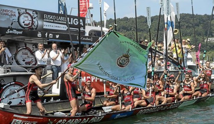 El fin de semana de la Liga Eusko Label se cerraba con una sorpresa aún mayor que la del sábado. Cabo Da Cruz se envolvió con la Hondarribiko XXXI. Bandera; la segunda en su palmarés, ya que también se impuso en Hondarribia allá por 2004. Los de Boiro hicieron valer unas condiciones favorables del viento y las mareas vivas y el poder bogar por una calle tres tocada por los dioses. Pero su regata, partiendo de la segunda tanda, no tuvo mácula.