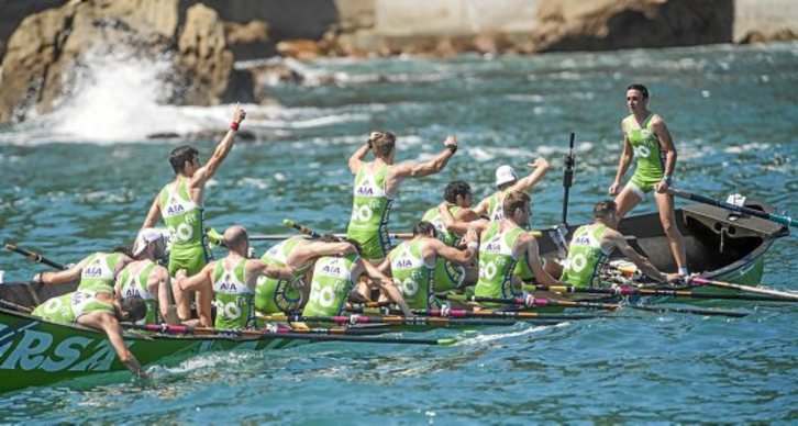 Jon Salsamendi introdujo hasta seis cambios y el resultado no pudo ser mejor: dos grandes largos de ida, sacando diferencias desde el comienzo, y dos todavía mejores de vuelta, con Gorka Aranberri cogiendo olas una detrás de otra. Una versión más reconocible del bote amarillo, que remando así opta a ganar cualquier regata. Incluso a repetir triunfo en La Concha, por qué no. En la primera tanda, el que renació de sus cenizas fue San Juan. Cuando peor pintaban las cosas para la «Erreka», con Tirán recortando distancias jornada tras jornada, la trainera rosa cuajó una regata formidable, imponiéndose en esa primera manga y sacando tres puntos a Tirán, último ayer.
