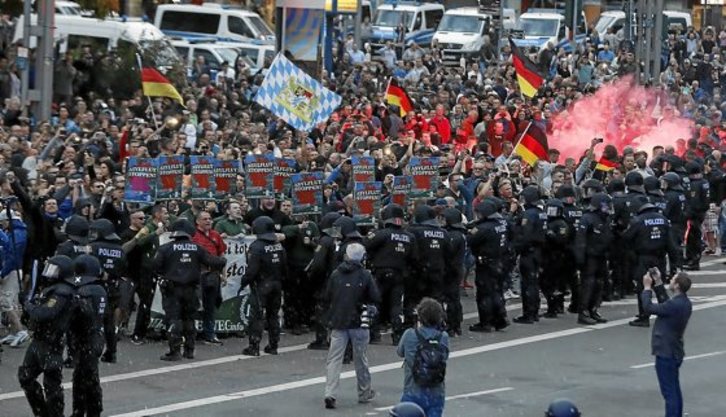 Chemnitz, en Alemania, está destacándose en ese sentido. La marcha neonazi partió de la plaza Karl Marx, punto emblemático de dicha ciudad, donde también se había convocado una protesta en contra de la xenofobia (congregó a mil participantes). Las autoridades habían desplegado un fuerte contingente policial para evitar encontronazos entre ambas manifestaciones de signo contrario.