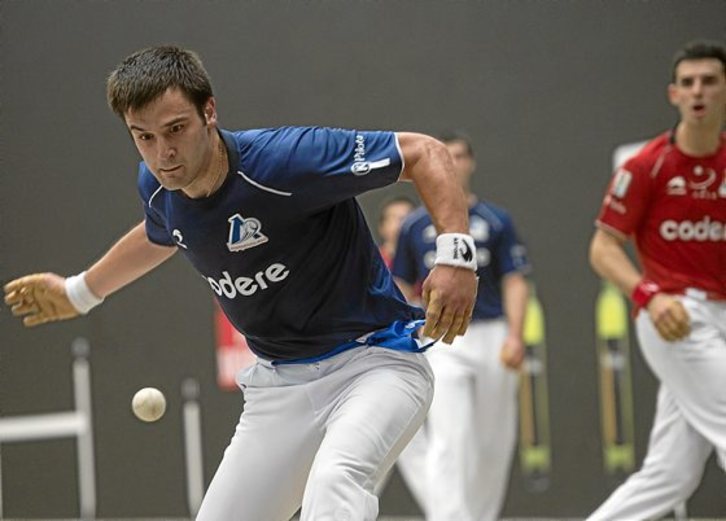 El campeón manomanista tuvo un día gris, con seis tantos por cuatro errores, un bagaje insuficiente ante una pareja que, además de estar muy inspirada en ataque, defendió muchísimo, en una actuación brillante, que le sirvió para obtener un triunfo muy convincente de cara a la final del miércoles.