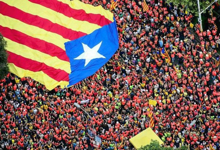 Finalmente se desplomó, pero costó bastante más de lo previsto. Fue una involuntaria pero sugerente alegoría: esto no va a ser nada fácil, pero a estas alturas todos lo saben. Las Diadas de 2014, 2015 y 2017 fueron anunciadas como la última movilización antes de la independencia. Ya no. Ya no existe una fecha final, sino hitos en un camino que se sabe largo.