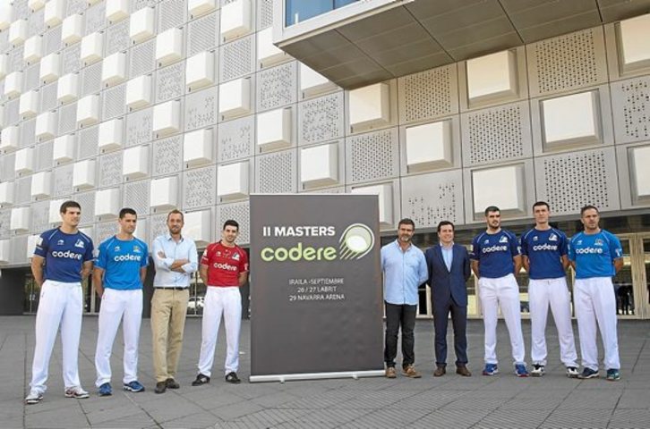 La segunda edición del Masters Codere, que se jugará los días 26, 27 y 29 de setiembre en Iruñea, se presentó ayer de manera oficial en la sala de prensa del Navarra Arena, el escenario que albergará la final del torneo y cuyo frontón albergará por primera vez un partido oficial de pelota. Precisamente, clasificarse para esa final y estar en el estreno del coloso iruindarra parece el mayor aliciente de un torneo que genera dudas por su sistema de competición.