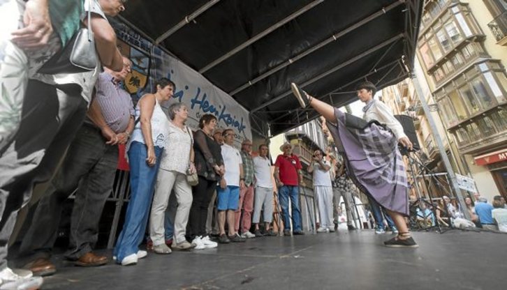 Mientras los kilikis y los cabezudos hacían correr a los pequeños, la Plaza de la Nabarreria se ponía seria para un momento especial. La bertsolari Irati Majuelo se subió a un escenario y cantó en recuerdo de la represión a la que se sometió a la izquierda alternativa del barrio hace 40 años. Luego se llamó a que se subieran a él a los miembros de aquella comisión de fiestas de Alde Zaharra a la que le tocó organizar unos segundos sanfermines con varios encierros después de que se suspendieran los sanfermines de 1978. También subieron miembros de la Federación de Peñas de ese año. Su barrio les recompensó con un aurresku.