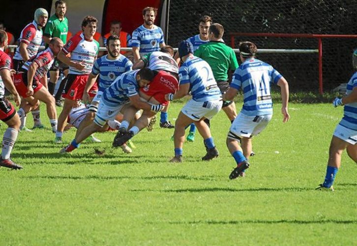 Los verdes entraron mejor al partido que La Vila y fruto de su iniciativa en el juego lograron ponerse por delante en el marcador tras un ensayo anotado por Kepa Mijango, que Elosegi rubricaría con la posterior transformación (0-7).
