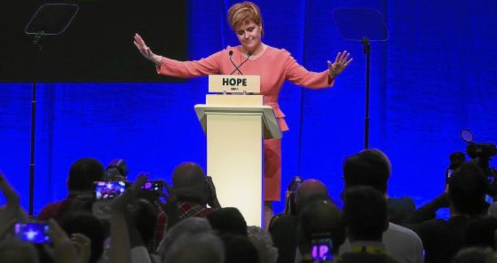 «Estoy más segura que nunca que Escocia llegará a ser independiente. A día de hoy nuestra misión es actualizar y fortalecer la causa independentista», instó a los suyos la primera ministra escocesa, que mandó un mensaje tanto a los tories como a los laboristas sobre la legitimidad del Parlamento de Edimburgo de convocar una segunda consulta sobre la independencia del país: «Podéis oponeros a la independencia, es vuestro derecho democrático. Pero no podéis, y no lo haréis, denegar a Escocia su derecho a decidir».