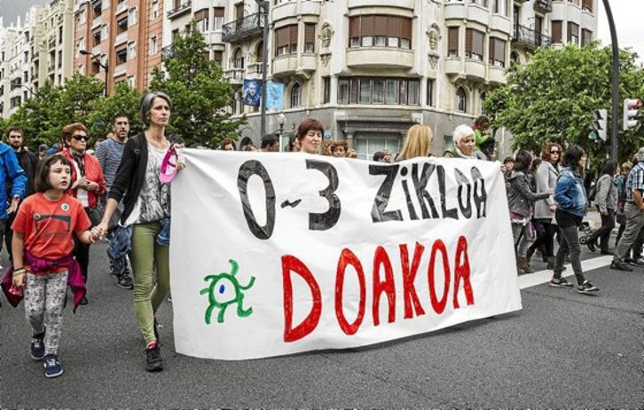 Por otro lado, ayer el sindicato LAB registró más de 800 firmas en el Parlamento para exigir que el primer ciclo de Educación Infantil se mantenga de 0 a 3 años y los niños de 2 años no pasen a la segunda etapa como pretende el Gabinete de Iñigo Urkullu. «Lo importante en este caso son los niños y creemos que a esa edad están mejor en el primer ciclo de Infantil, los ratios se cuidan más», manifestó en declaraciones a los medios Lorea Igartua.