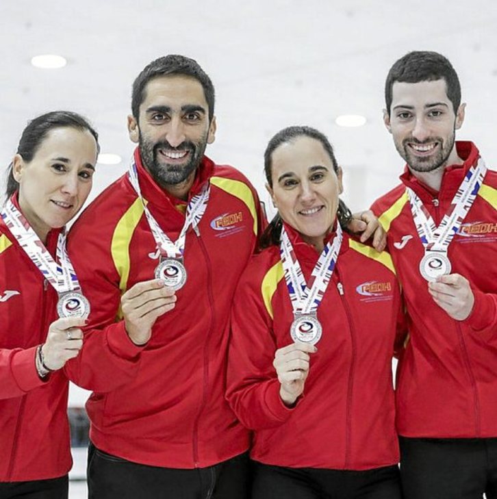 Los cuatro integrantes del Txuri-Berri Sergio Vez, Mikel Unanue y las gemelas Oihane y Leire Otaegi dieronla sorpresa y se colgaron la medalla de plata en el Campeonato del Mundo de curling mixto en Canadá.
