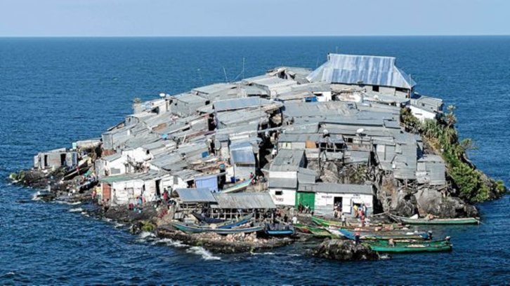«Burdinaz jantzitako irla» gisa ezagutzen da Victoria lakuko Migingo. Dortoka forma du eta lurreko «tokirik zatar eta arriskutsuenen» zerrendetan punta-puntan ageri da. Hektarea laurden eskaseko tamaina du eta 130 laguneko populazioa; hortaz, bertakoak ia bata bestearen gainean bizi dira, txapazko etxoletan. Kenyaren eta Ugandaren arteko liskar iturri amaiezina da bere kokapena eta arrantzatik eratorritako irabaziak direla medio.Yasuyoshi CHIBA | AFP PHOTO