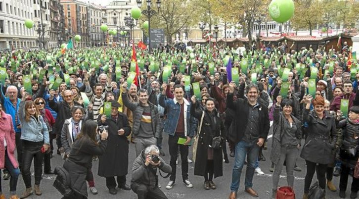 Varios miles de personas (4.600 según el recuento de GARA) en el Arenal bilbaino alzando papeletas verdes en favor de una república vasca cerraron la movilización de EH Bildu en defensa de soberanía total para construir una República «de abajo a arriba» que proteja a todas las personas, en el 40º aniversario de la Constitución española. El PNV dio una rueda de prensa cerca de allí, en Sabin Etxea. El portavoz jeltzale en el Senado, Jokin Bildarratz, defendió una reforma de la Constitución que incluya un reconocimiento a la «realidad nacional», algo que cree que «reforzaría» al Estado.