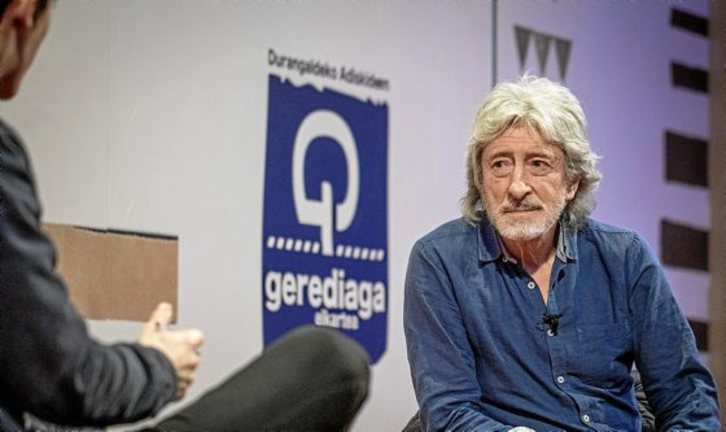 Berrogeita hamahiru urte atzera egin zuen atzo Benito Lertxundik. Geruza berean baina ez toki berean egin zen aurreneko Azokara. «Gogoan dut nola Lourdes (Iriondo) eta biok kantuan aritu ginen liburuak eta diskoak saltzen ziren bitartean». Magnitudeak eta parametroak zeharo desberdinak dira bost hamarkada joan eta gero, baina oinarrian berberean jarraitzen du kantari oriotarrak: senari eskua emanda joan izan da beti. Sena-taria litzateke, nahiko balu. Mende erdiko sorkuntza bideari eta “Ospakizun gauean” (Kantaita) azken diskoari buruz hizketan abiatu zuen, Lander Arretxeak gidatuta, Gogoetaren Plazako lehenengo saioa.