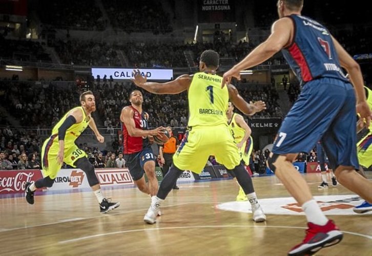 Quien creyera que el Barça, ya que arrastraba cuatro derrotas europeas de forma seguida, iba a resultar una bicoca, se equivocaba. En la primera mitad los de Svetislav Pesic llevaron la voz cantante, con la feliz noticia de que el Baskonia no se iba a descolgar. La presión a toda cancha de la escuadra culé provocó un dolor de cabeza constante en el bando gasteiztarra. Y por si fuera poco, el rebote en ataque le daba réditos añadidos.