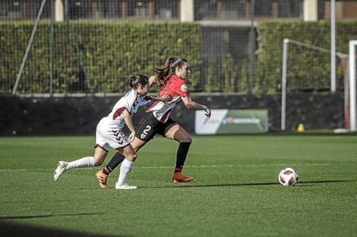 El equipo de Joseba Agirre, además, tuvo la fortuna de encarrilar pronto el choque. Mediado el primer tiempo, Moraza remataba un espléndido balón de Cirauqui. El Athletic supo frenar la respuesta de su rival, que solo causó preocupación con un remate de Alba Redondo poco antes del descanso que se marchó fuera.