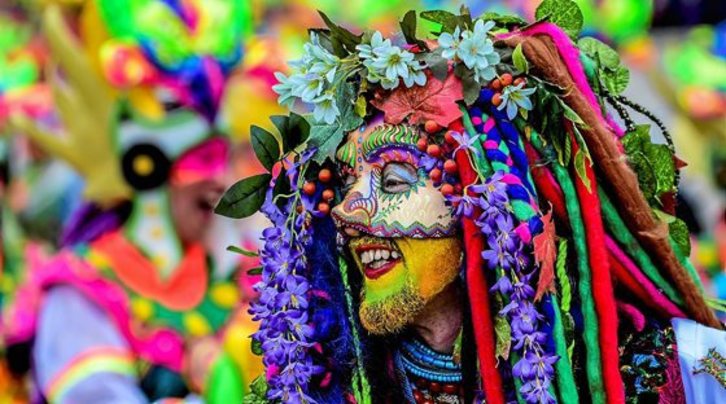 Con todos sus participantes con la cara pintada de blanco –ayer lo hicieron de negro– finaliza hoy el Carnaval de Negros y Blancos, declarado en 2009 Patrimonio Cultural de la Humanidad de la Unesco, que se inició el 28 de diciembre en la ciudad andina de Pasto, en Colombia. Periodo de convivencia intensa, las dos últimas jornadas marcan el momento álgido de un carnaval rico en actos, como el desfile «Canto a la Tierra» –en la imagen– celebrado el jueves.Juan BARRETO | AFP