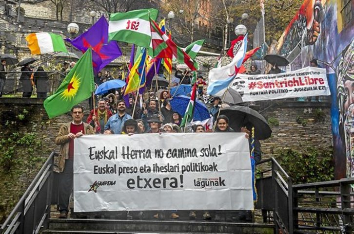 Askapenak Bilboko Zazpi Katu gaztetxean euskal presoen aldeko ekitaldia antolatu zuen eguerdian, ondoren Bilboko manifestaziora joateko xedearekin. Euskal Herriaren Lagunak (EHL) izeneko plataforman bat egiten duten Andaluzia, Katalunia, Italia eta Gaztelako militanteek parte hartu zuten. Gainera, Etxerat elkarteko kideek kinke bat oparitu zieten plataformako lagunei, «elkartasuna joan-etorrikoa izan behar delako». Baionan ere egon ziren EHLko zenbait kide.Marisol RAMIREZ | FOKU