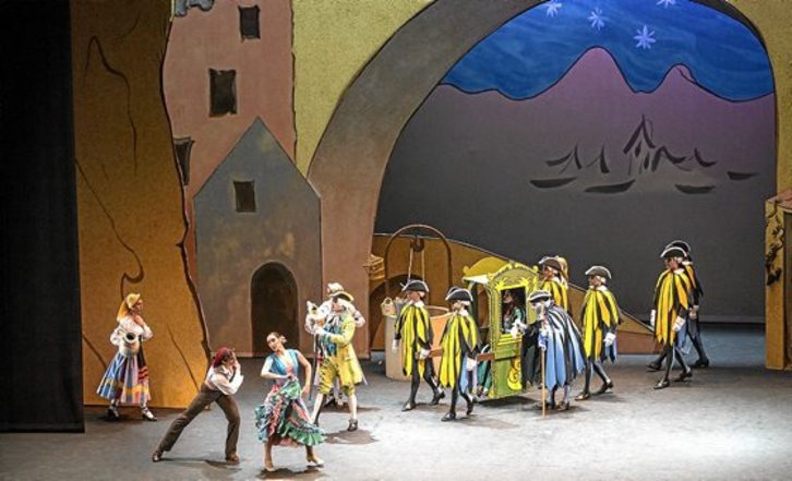 La segunda parte del espectáculo fue, si cabe, mejor, porque a una de las mejores coreografías de Antonio se sumó la presencia de la escenografía más maravillosa jamás creada para un ballet: la que Pablo Picasso diseñó para el “El sombrero de tres picos” de Manuel de Falla, con motivo de su estreno por los Ballets Rusos en Londres en 1919. Si los datos no me fallan, el set de escenarios y figurines diseñados por Picasso no se habían vuelto a emplear desde 1997, con motivo de la reapertura del Teatro Real de Madrid. La increíble riqueza del vestuario, que abarca una amplia gama cromática de colores, y que presenta detalles geométricos que bailan por sí mismos junto al movimientos de los bailarines, generaron un efecto hipnótico en pasajes como la “Jota” final, con los casi 40 componentes de la compañía sobre el escenario.