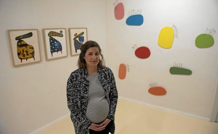 Luisa Chillida acostumbra a trabajar el hierro en esculturas, tal y como hacía su abuelo, pero desde que tuvo a su primer hijo ha probado otras técnicas. «Ahora estoy embarazada, a punto de dar a luz, y también tengo un niño al que le he estado dando el pecho hasta hace poco. He trabajado mucho con hierro y soldadura, pero es tóxico, así que en los últimos tiempos he tenido que parar de hacer ese tipo de trabajos y me he dedicado a trabajar más en casa y en formatos en dos dimensiones, y a estar más enfocada en cosas más plásticas en lugar de la escultura», comenta.