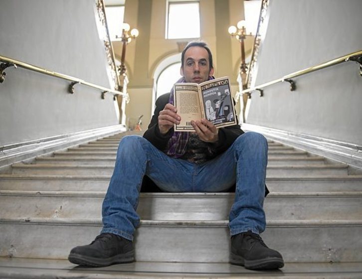 Hitzontzi deitu dio bere buruari Edu Zelaietak (Gasteiz, 1973), «gupidarik gabe», “Mundutik mundua” saiakera laburra osatzerakoan. «Isuri ditudan esanek ez didate mihia lehortu. Arabako hitzontzi ahaldun bat naiz», azaldu zuen atzo Donostian Pamielarekin argitaratu duen saiakera laburra aurkezterakoan.