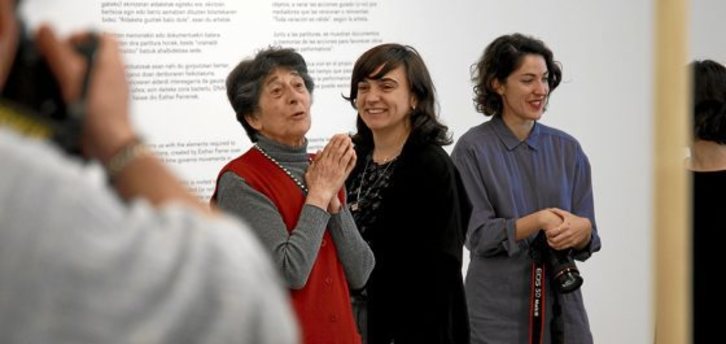 Para darle la bienvenida a la artista donostiarra, la directora general de Tabakalera, Edurne Ormazabal, y la directora cultural, Ane Rodríguez, destacaron que era un día de doble celebración, por la inauguración de la nueva sala de muestras, que coloca la oferta expositiva en el centro, y porque la invitada para ocupar este espacio por primera vez es Ferrer (hasta el 26 de mayo).