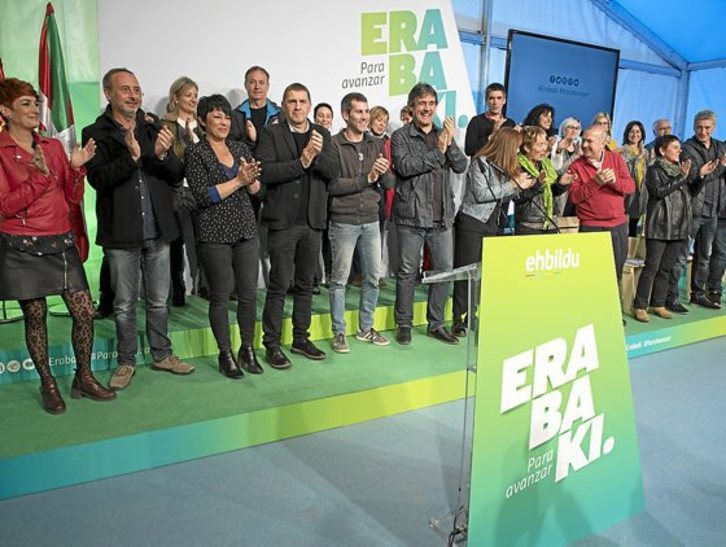 Acompañado de Iñaki Ruiz de Pinedo, Mertxe Aizpurua, Jon Iñarritu, Oskar Matute y varios candidatos al Senado, presentó a EH Bildu como la fuerza de izquierda que contrapone sus «valores alternativos» a la ola de autoritarismo que se extiende en Europa y todo el mundo. «Frente a la misoginia EH Bildu defiende el feminismo; frente al 155, el derecho de autodeterminación; y frente al neoliberalismo, políticas sociales progresistas». Defendió mirar al futuro y no al pasado para lograr «una república de iguales». Recordó que «nosotros decimos lo que hacemos y hacemos lo que decimos».