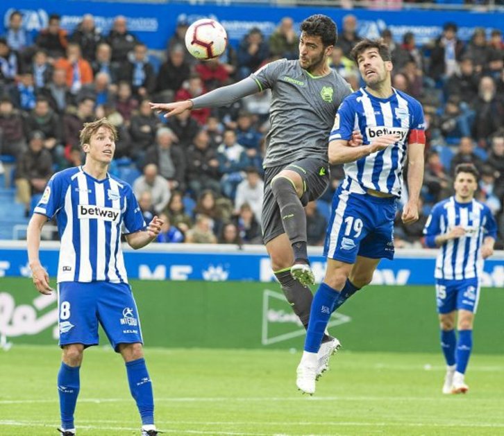 Ximo Navarro, Jony, el propio delantero bonaerense o incluso Wakaso tuvieron sendas ocasiones para empatar el partido pero el luminoso no quiso moverse del 0-1. Porque también la Real tuvo opciones para cambiar el resultado, para ampliar la renta exactamente, mediante contragolpes que pudieron ser letales pero en los que aparecieron dos figuras como Duarte y Navarro. Pero no. El marcador de Mendizorrotza estaba condenado a repetir el mismo resultado de Anoeta: 0-1. ¿Y qué supone esto? Que la Real tiene mejor gol average general que el Alavés y, por tanto, además de alcanzar los mismos puntos que los babazorros, se colocan por encima de ellos en la tabla, a tres puntos del séptimo, el Athletic, que jugará hoy en Valladolid su partido de la trigesimasexta jornada de Liga.