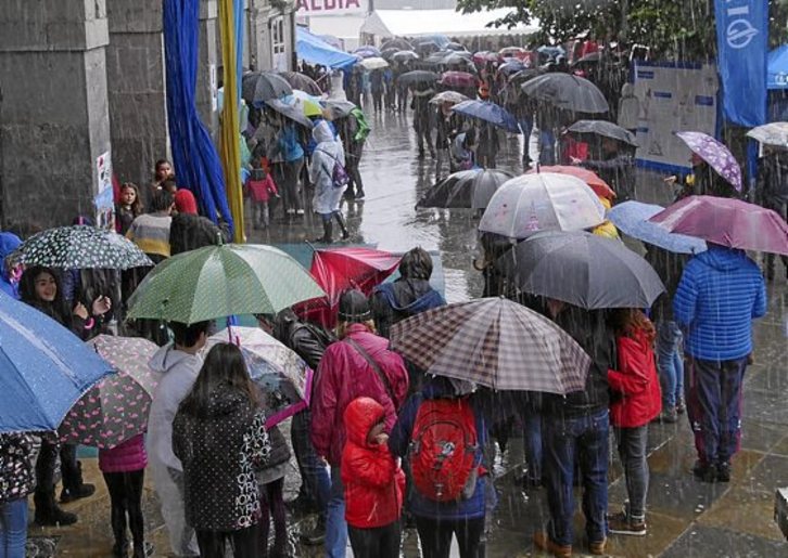 Eguraldiak urte osoko lanak eta ilusioak zapuztu zituen atzo, eta Azkue Ikastolak «sekula Ibilaldi egun batean jasotako minimo historikoa» biltzea baino ez zuen lortu. Antolatzaileek eguneko gastuei aurre egiteko eta zorra estaltzeko elkartasuna eskatu dute.