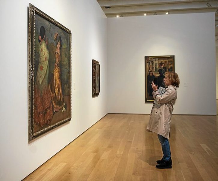 Entre las obras que se muestran en Bilbo los comisarios destacaron el conocido retrato de “El enano Gregorio el botero”, propiedad del Hermitage de San Petersburgo, y obras como “Frente al Moulin Rouge”, “Mujer de Alcalá de Guadaira”, “La del abanico”, el autorretrato que regaló al fundador de la Sociedad Hispánica de Nueva York, y el “Retrato de la condesa Mathieu de Noailles”.