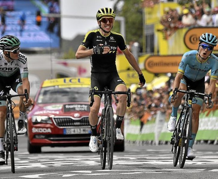 Simon Yates ganó ayer la duodécima etapa del Tour con final en Bagnères de Bigorre al imponerse en el sprint de los tres corredores más fuertes de una fuga de 42 que tuvo el permiso de un pelotón que pensaba más en la crono de hoy de Pau.