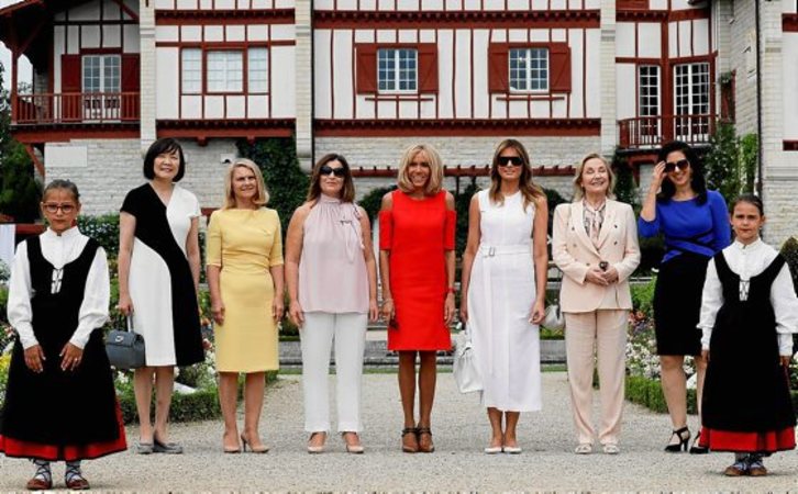 Con Brigitte Macron, y sobre todo Melania Trump, acaparando focos y fotos, las mujeres de algunos mandatarios del G7 y de otros países invitados posaron ante el palacete dentro del tour que realizaron por localidades cercanas a Biarritz. Mujeres, porque la práctica totalidad de los integrantes del selecto grupo son hombres, a excepción de Angela Merkel, cuyo marido, Joachim Sauer, nunca está ni se le espera en este tipo de eventos.