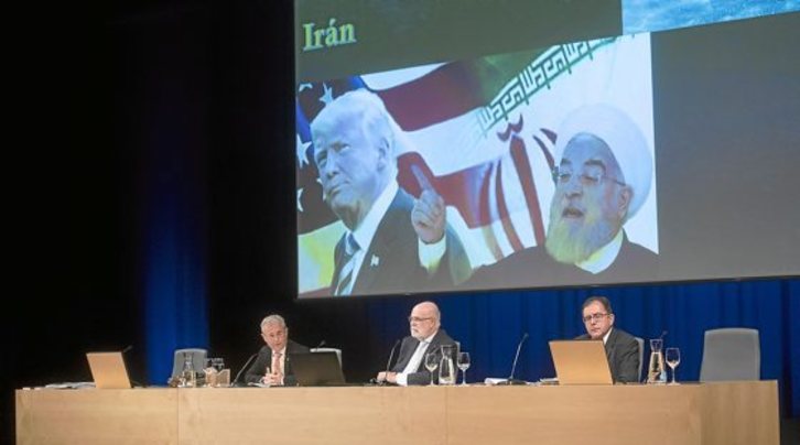Unos EEUU que, recordó, son autosuficientes y ya no dependen de los hidrocarburos de sus aliadas monarquías del Golfo, lo que, unido a la pugna económico-tecnológica –«y a mucho no tardar» militar– con China, han virado hacia el Sureste Asiático sus prioridades estratégicas. Pero unos EEUU que «tampoco abandonarán totalmente el escenario», predijo el general, recordando que la retirada anunciada hace casi un año no se ha cumplido, e insistiendo en que su política exterior es un continuum en el que los efectos de los anuncios vía twitter de Trump tienen un efecto limitado, aunque sea visible en algún caso como en el seguidismo ya sin complejo alguno de Israel.