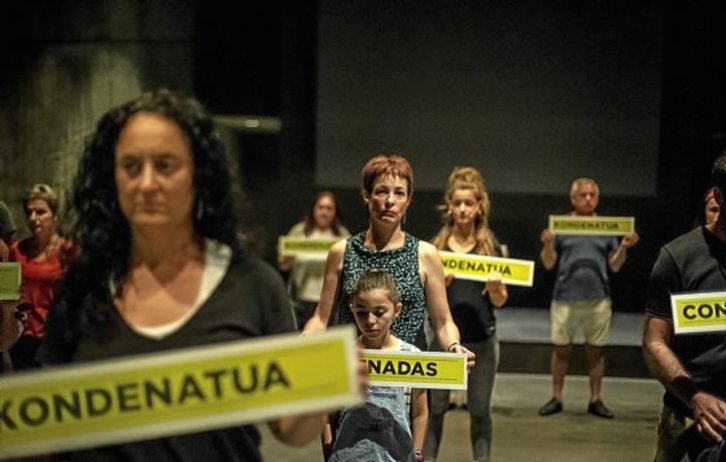 Cuatro de ellos dieron testimonio de la realidad diaria que les rodea desde hace décadas. Txemin Bienzobas dijo que a su hijo «le han condenado a no poder visitar a su tío preso en la cárcel de Puerto de Santa María» por la discapacidad que padece. «Si para cualquiera es complicado recorrer por imposición 900 kilómetros de ida y 900 kilómetros de vuelta, para personas mayores, niños, personas enfermas... aún lo es más», señaló, reconociendo que «sería todo diferente si nuestro familiar se encontrara en Euskal Herria». «A mi hijo le han condenado sin juzgarle», lamentó.