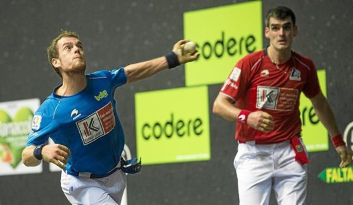 El delantero de Baiko se presentó en Miribilla con las ideas muy claras, debía hacer mover a su rival, a ser posible cerca del frontis. Y, con osadía, tomando riesgos, pero jugando con criterio y acierto, tuvo a Ezkurdia a su merced y contra las cuerdas desde el comienzo. Es cierto que cometió errores, pero impuso un ritmo que muy cerca estuvo de llevarse por delante a un Ezkurdia incapaz de salir de la trampa. Laso le cortaba a pared para rematarlo al ancho con certeros ganchos.