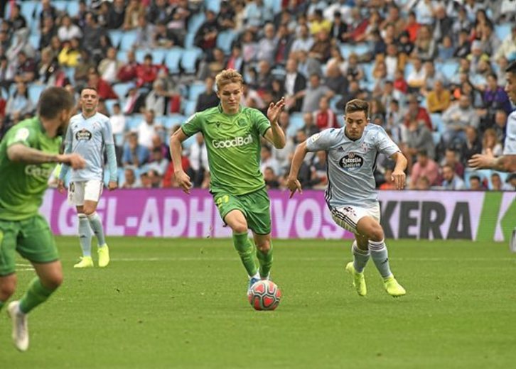 Imanol manifestó ayer en la sala de prensa de Zubieta antes del entrenamiento que dirigió a puerta cerrada a la tarde que cuenta con Martin Odegaard a pesar de los problemas físicos con los que acabó el partido del domingo en Vigo: «Si mejora como desde el partido hasta el día de ayer, espero que no tenga ningún problema y esté al 100% para jugar. Estos jugadores están habituados a jugar cada tres días y, si ha evolucionado como espero, tendrá posibilidades de jugar contra el Levante».