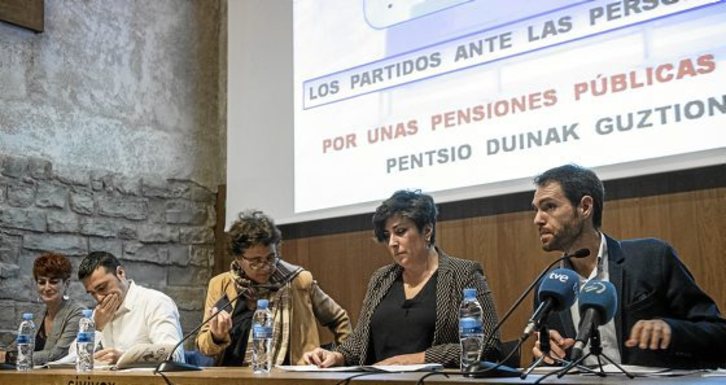 LA CAMPAñA ELECTORAL YA ESTÁ AQUÍ Y EL TEMA DE LAS PENSIONES VUELVE A ESTAR ENCIMA DE LA MESA. MAYORES CONTRA LA CRISIS UNIÓ A LAS PARTIDOS NAVARROS EN UNA MESA. ALGUNOS VOLVIERON A PLANTEAR LAS MISMAS PROMESAS DE SIEMPRE. OTROS RECLAMARON MEDIDAS PARA MANTENER UN SISTEMA PÚBLICO DE PENSIONES.