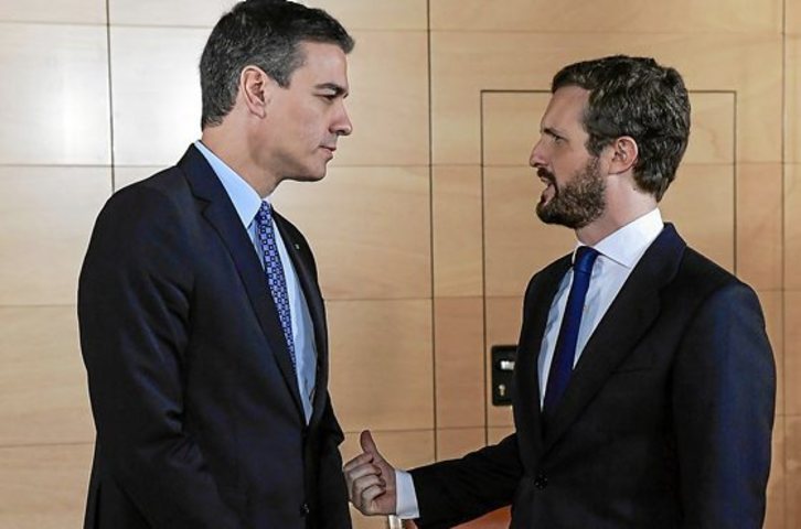 El PP «no puede abstenerse ante un Gobierno socialista con los comunistas de Podemos, que sería letal para España y un suicidio para el PP», afirmó Casado. El líder derechista se tomó «casi como un insulto» que Sánchez planteara «como única alternativa» un acuerdo de Gobierno «para excluir al PP».