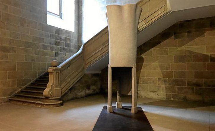 El Museo San Telmo de Donostia acoge «Miracielo segoviano», de José Ramón Anda. Se trata de una pieza fabricada con un tronco de plátano vacío y tiene la peculiaridad de que el público puede entrar en ella, de forma que desde el interior se puede conocer un nuevo punto de vista escultórico.GARA