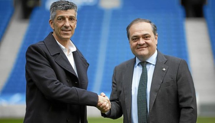El presidente Jokin Aperribay y el entrenador oriotarra firmaron ayer el contrato que alarga su relación otra temporada. «Antes de renovar decía que me sentía contento, valorado y seguro, esto es la consecuencia».
