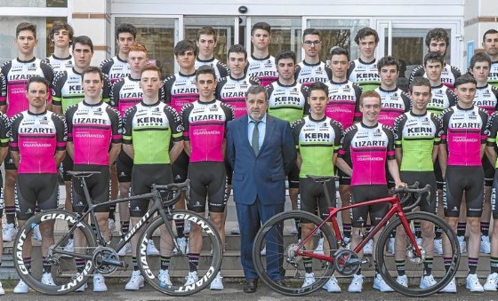 El acto de ayer en el hotel Andia de Orkoien sirvió para presentar también al Lizarte amateur, que se rejuvenece con el ascenso de ocho ciclistas al continental, el de Iñigo Elosegui al Movistar y las bajas de Pablo Ara, Miguel Briz, Iñigo Indurain, Miguel Mujika y Asier Ormazabal.