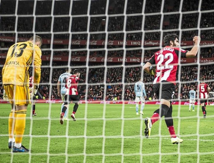 El ritmo decayó por momentos debido a faltas y tarjetas, pero el Athletic seguía llevando el control. Las ocasiones también fueron suyas con un disparo de Yuri y un remate de cabeza a bocajarro de Muniain. La réplica de los visitantes llegaba con un cabezazo de Rafinha que bloqueó Iago y un remate fallido de Santi Mina con todo a su favor. Un primer tiempo entretenido, aunque quizá demasiado abierto para los intereses de un Athletic, al que le faltó efectividad.