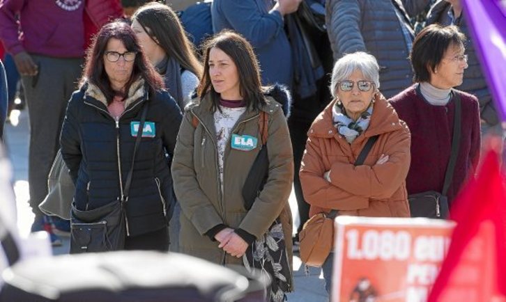 Izaskun Esparza no llevó a ninguno de sus dos hijos, de 6 y 12 años, a la ikas. Tampoco hizo piquete. Acudió a la manifestación del mediodía compartiendo pancarta con sus compañeras. Esparza es educadora social y pelea por el primer convenio para el sector de los cuidados. En su trabajo, cuida de mujeres víctimas de violencia, de menores, de sintecho... Su lucha no va –solo– de dinero. «Tenemos turnos de 24 horas, no hay conciliación. Aún nos regimos con el Estatuto de los Trabajadores».