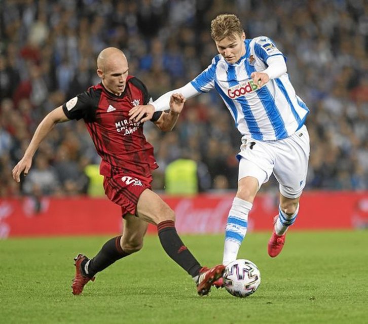 Martín Merquelanz fue sustituido al descanso por molestias en el hombro tras dar la asistencia del gol del Mirandés y ayer le realizaron pruebas para determinar el alcance del problema. Modibo Sagnan, el tercer cedido por la Real, debutó y disputó los noventa minutos el domingo.
