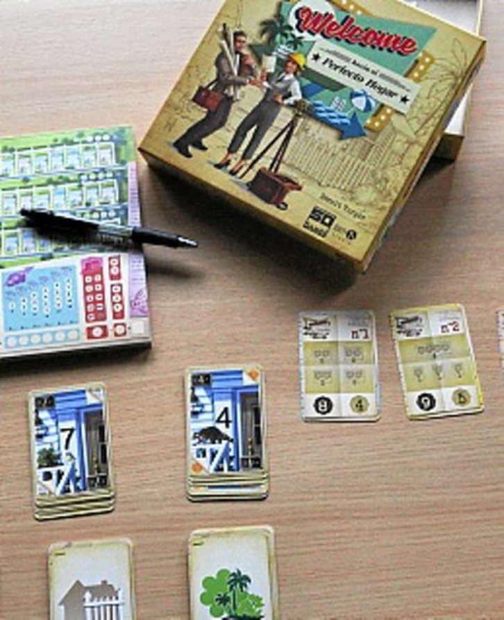 De un tiempo a esta parte se han puesto de moda los juegos de roll & writte, que traducido viene a ser tirar dados y tachar determinadas casillas en función de los resultados. “Welcome hacia el perfecto hogar” le da un pequeño giro a esta mecánica y usa un mazo de cartas en vez de dados. Las combinaciones que vayan saliendo nos permitirán ir eligiendo en cada turno entre varias opciones posibles para ir urbanizando nuestros barrios. Podremos poner jardines, construir piscinas o incrementar el valor de determinadas parcelas, entre otras posibilidades.