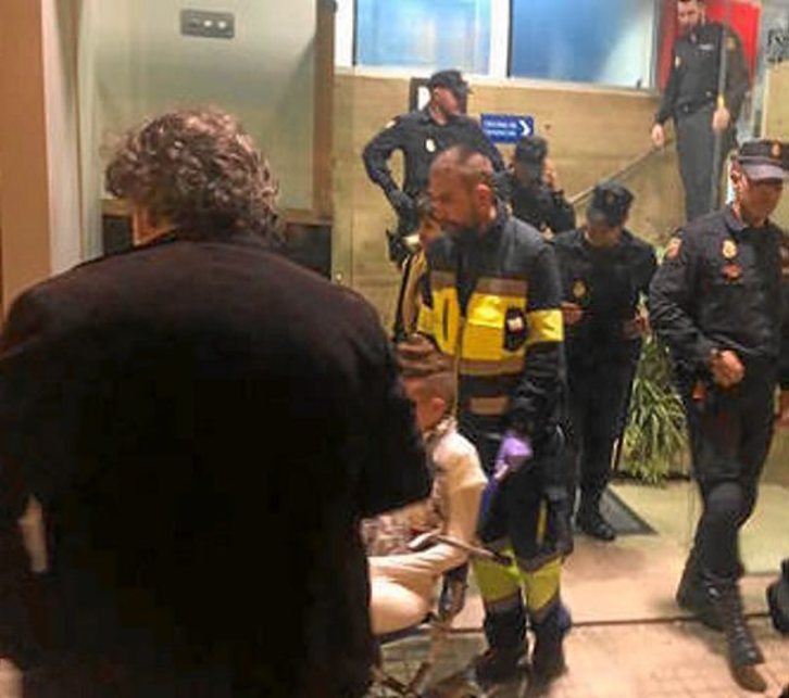 Añade la versión del Gobierno español que un grupo de 75 personas se congregó ante la comisaría y que lanzaron «una bengala, petardos y piedras, así como otros objetos contundentes» y que posteriormente en Alde Zaharra, se cruzaron contenedores y se lanzaron «objetos contundentes» contra los agentes que trataban de evitarlo. Siempre según la versión del Gobierno español, tres policías resultaron heridos.