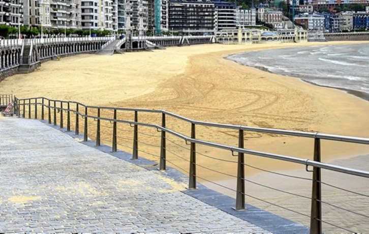 Playas de todos los continentes se preparan para abrir con aforos limitados este verano a fin de evitar aglomeraciones humanas que puedan extender la covid-19. Y entre ellas, también la emblemática Concha donostiarra, que arrastra problemas añadidos como la pérdida de casi todo el arenal cuando llega la marea alta.