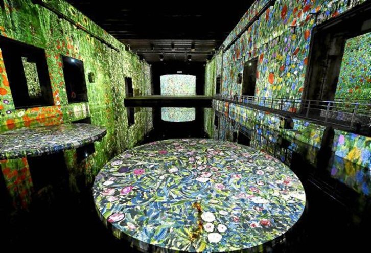 La antigua base nazi de submarinos de Burdeos abrirá sus puertas el 10 de junio reconvertida en Les Bassins de Lumières, un gigantesco e inmersivo centro de arte digital en el que se proyectarán las obras de Gustav Klimt –en la imagen– y Paul Klee. Este espacio de hormigón, acero y agua consta de cuatro cuencas submarinas de 110 metros de largo y 12 metros de altura que se pueden cruzar por pasarelas mientras las obras sonorizadas se proyectan en 360° sobre las paredes y se reflejan en el agua.