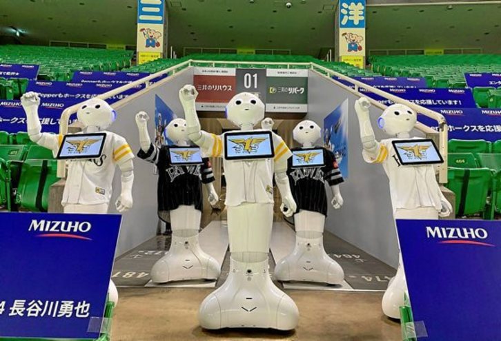 La ausencia de público en los espectáculos deportivos ha llevado al equipo japonés de béisbol Fukuoka SoftBank Hawks a sustituirlo por robots humanoides Pepper, de su patrocinadora SoftBank Robotics. En el descanso de los 16 partidos que le restan jugar como local en julio, bailarán junto al modelo cuadrúpedo Spot, de la Boston Dynamic. Un grupo de Peppers hará la ola cuando un jugador local golpee, se «entusiasmará» cuando su equipo marque un «home run» y hará gestos de alegría al final de la quinta base.